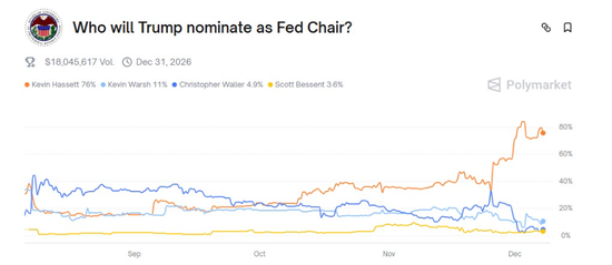 毫无疑问,哈塞特是特朗普总统的坚定支持者。但市场价格清楚地表明,交易员预计哈塞特的美联储不会像特朗普建议的那样宽松。